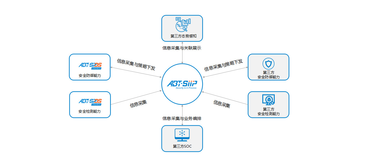 可集成第三方安全检测与防御能力,支持与第三方SOC(网络安全管理)及态势感知平台对接。